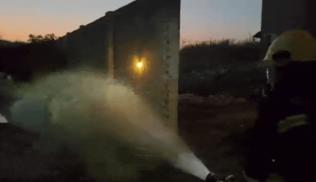 消防员迅速出水灭火降温