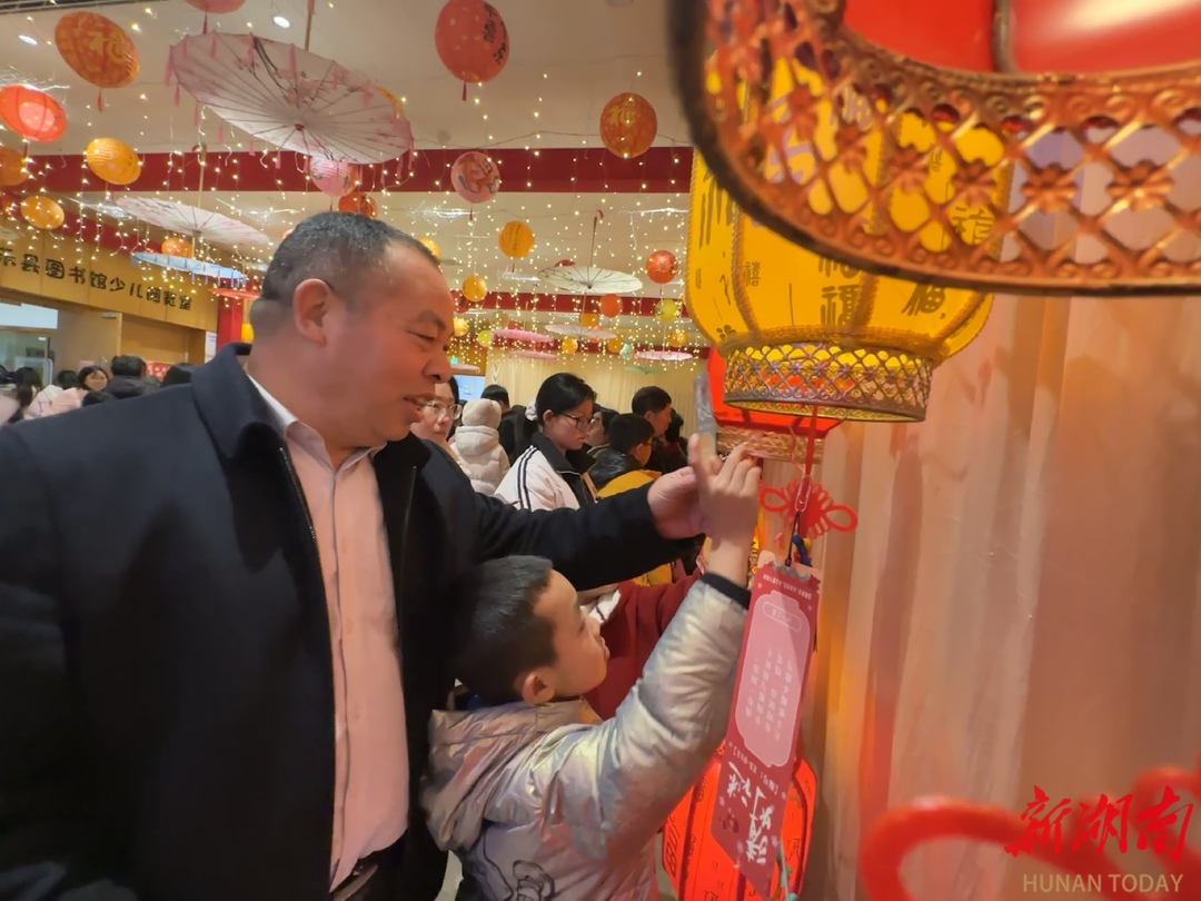 家长与孩子围站在一起,或静心沉思,或轻声探讨,共同破解谜题,不时传来破解谜题后的欢呼声。猜中谜底的家庭,认真将谜面编号与答案书写于纸上,前往兑奖处核对确认,核对无误后,不仅可领取精美奖品,还需按照要求将正确谜底书写于谜面上并划勾,沉浸式体验猜灯谜的传统习俗。
