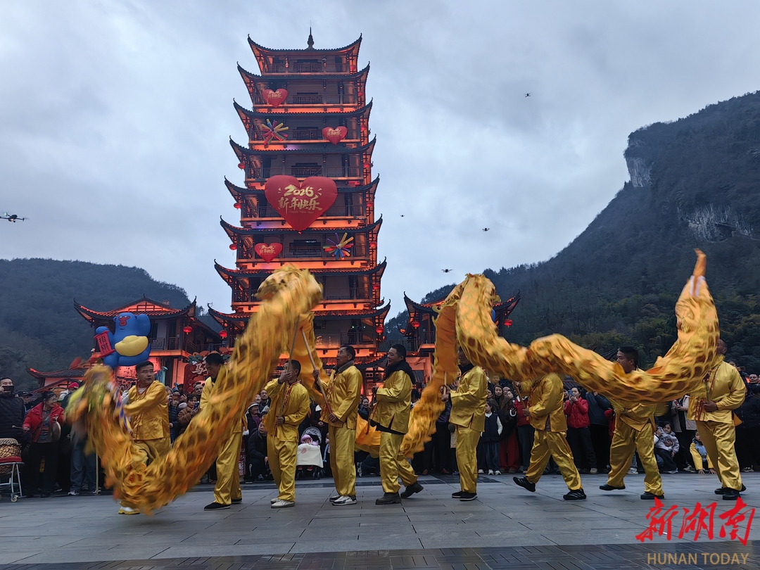 湖南日报·新湖南客户端3月4日讯(通讯员 毛丽芳)3月3日(农历正月十五),时值丙午马年元宵佳节,张家界武陵源区“龙腾盛世·福满乾坤”元宵系列活动在标志门广场、索溪河畔及双拥文化广场同步启幕。这场以传统非遗为魂、民俗市集为韵、光影艺术为形的文化盛宴,不仅吸引了本地市民倾城而出,更迎来西班牙、俄罗斯等国的众多境外游客,在奇峰秀水间共度一个红红火火的马年元宵。