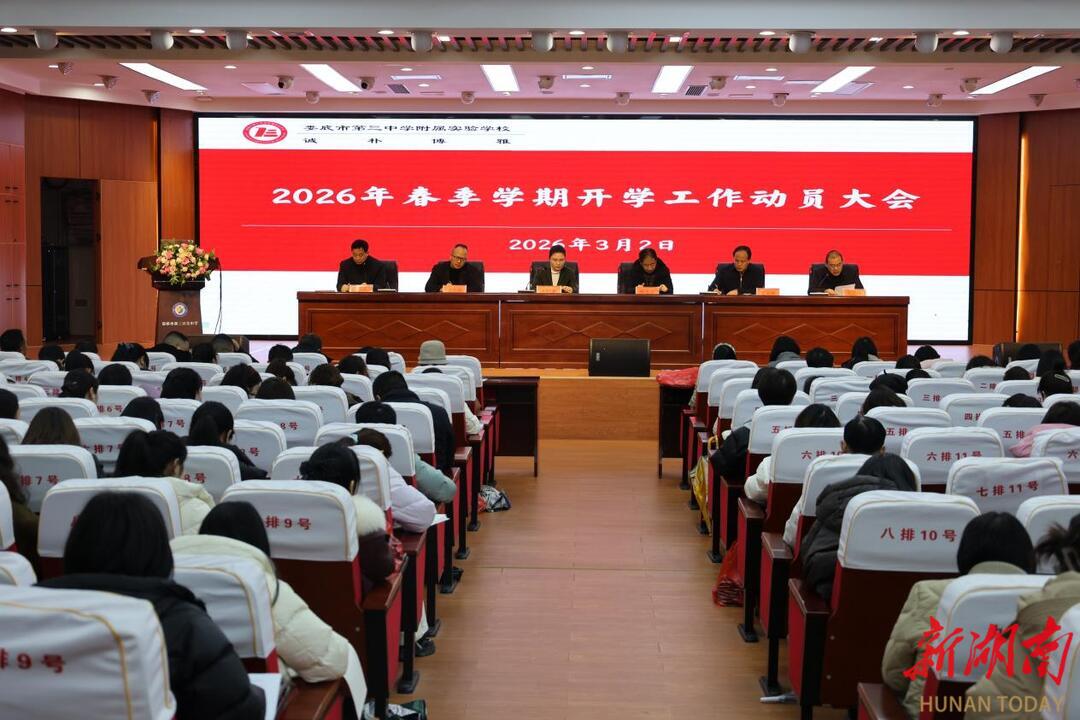 科教新报·新湖南客户端讯(通讯员 彭璐 颜钰涛)“石头剪刀布,赢家吃橘子!”两组队员轮番上阵,现场加油声、欢笑声此起彼伏……3月2日上午,娄底市第三中学附属实验学校会议室内暖意融融、喜气洋洋,一场别开生面的趣味游戏正在火热进行,这是该校2026年春季开学工作动员大会的互动环节。在轻松愉快的氛围中,全体教职工以饱满的热情开启了新学期的征程。