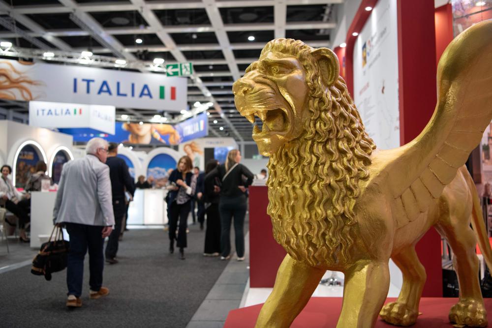 ↑3月3日,在德国首都柏林,人们在2026柏林国际旅游交易会意大利展区参观。