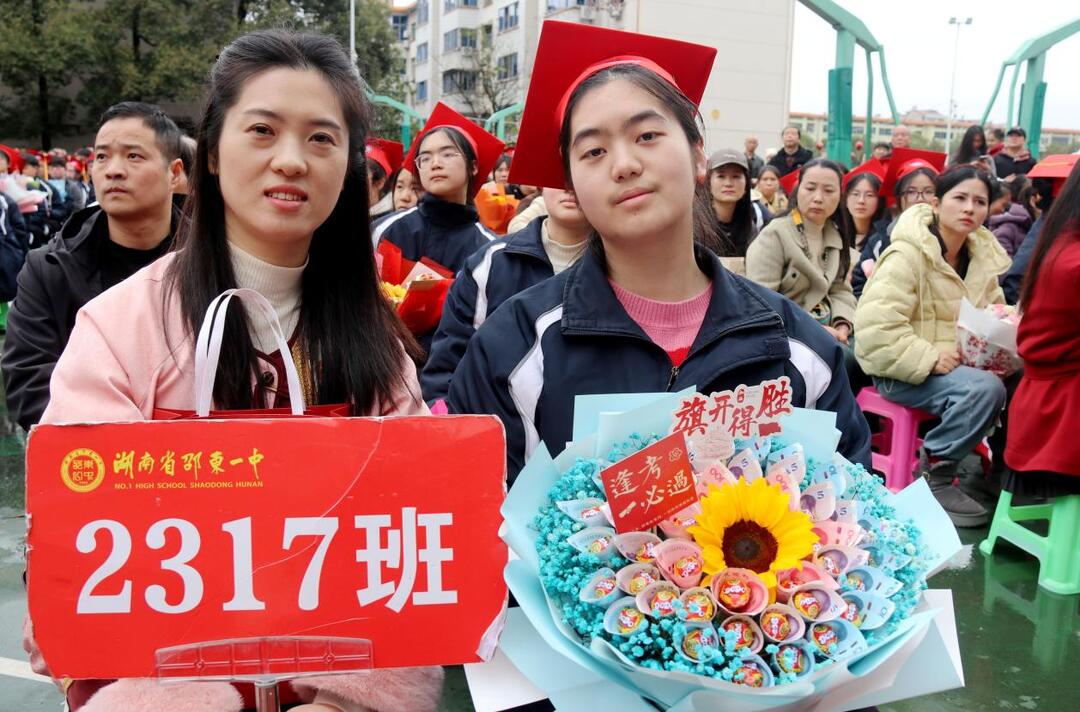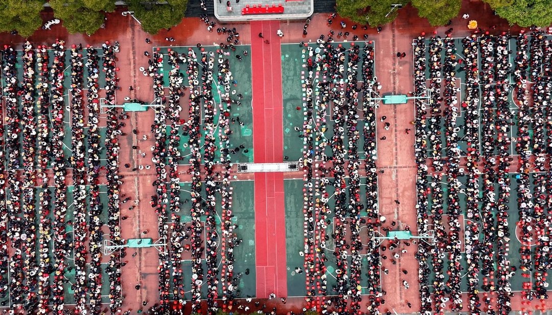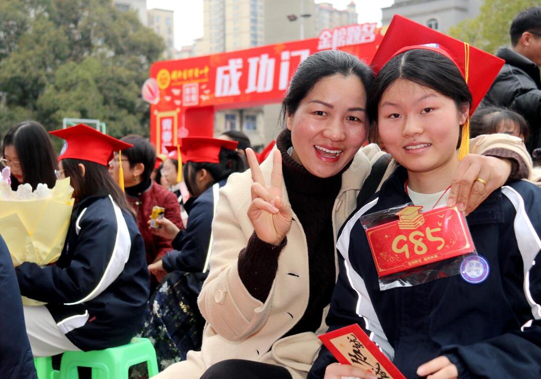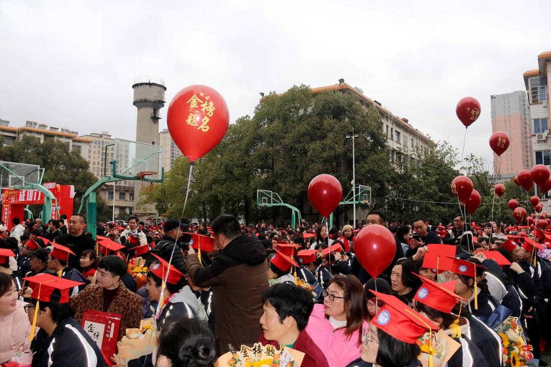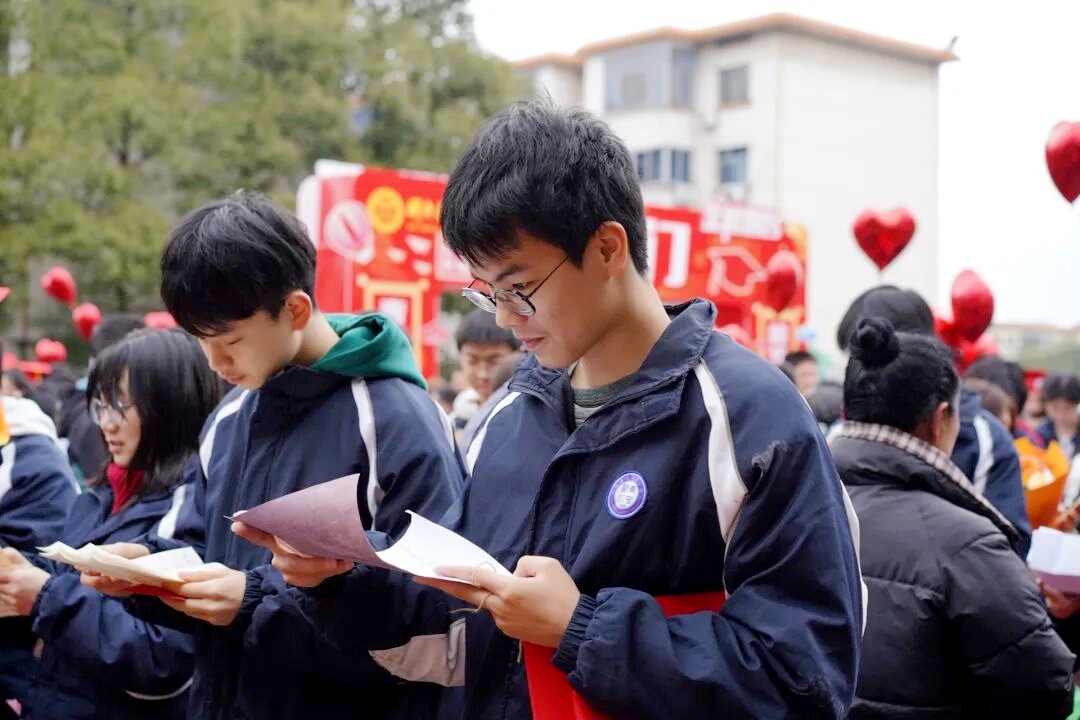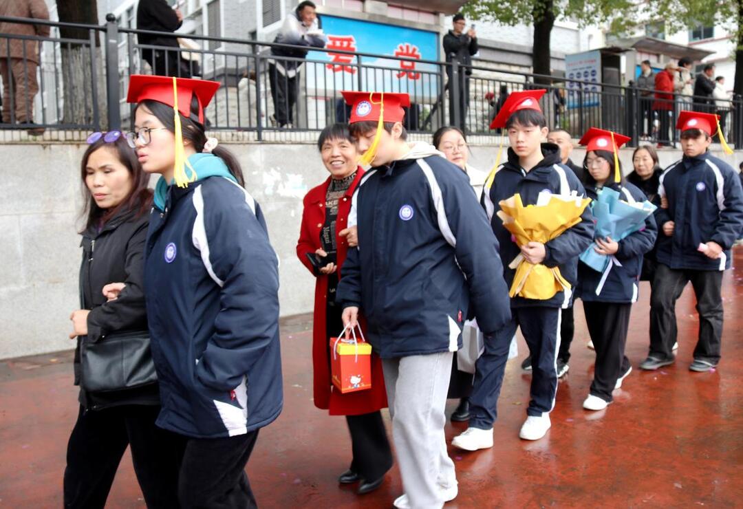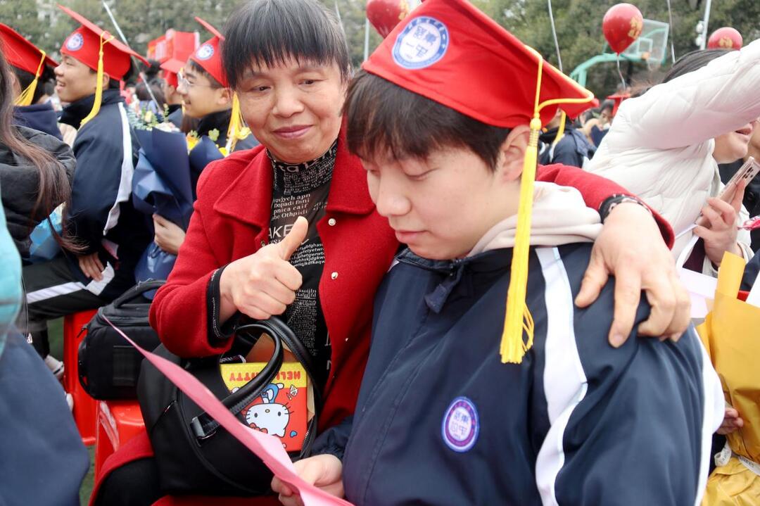 最激动人心的环节当属“跨越二门一梯”。在悠扬的乐曲中,各班学生与家长手挽手,依次走过象征成长阶段的“成人门”“成功门”“青云梯”。红毯绵延,掌声与祝福相伴,无数快门声定格下青春岁月中富有意义的瞬间。学校领导现场击掌鼓劲,加油呐喊的声音响彻篮球场。不少同学表示,这样一场仪式感满满的成人礼让他们感动,更激励着他们继续拼搏。