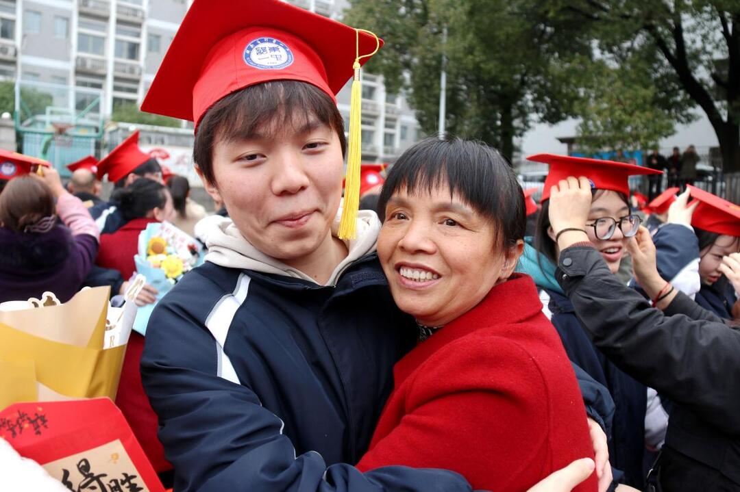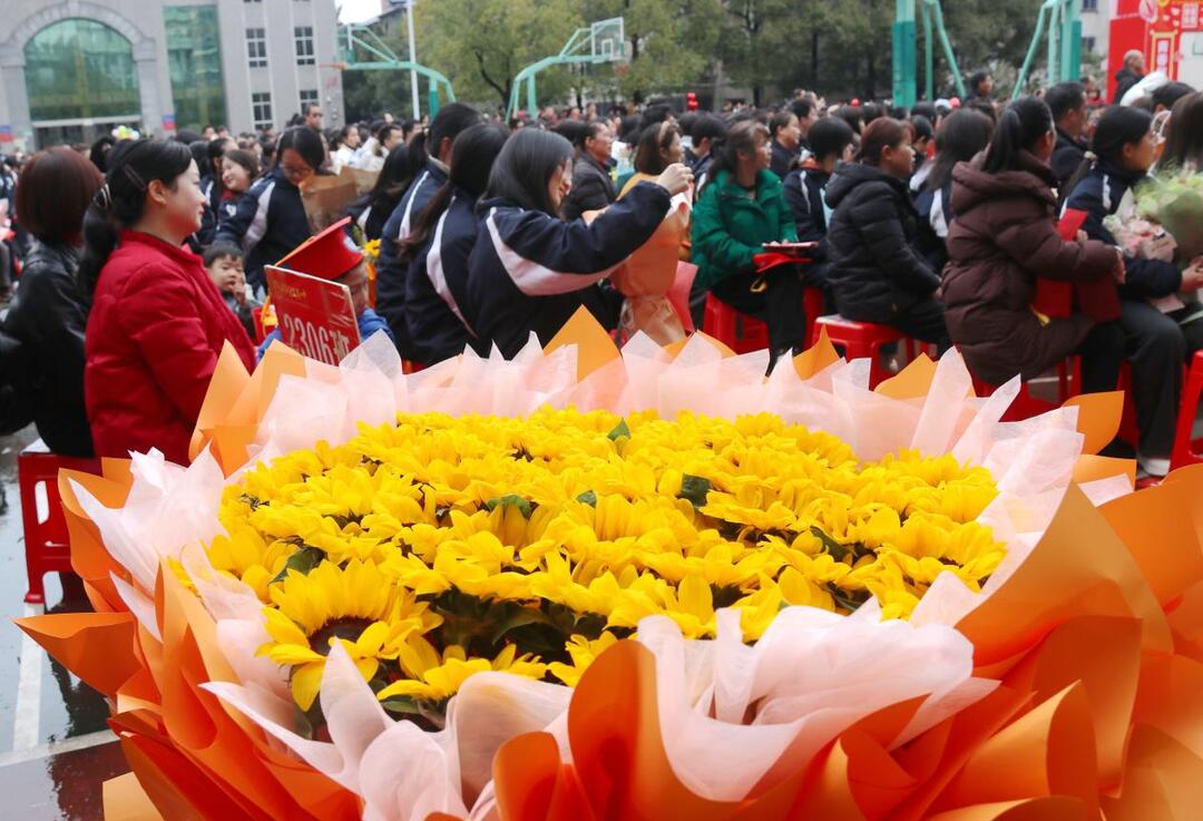 学生家长说:“我今天给孩子准备了一束花,因为今天是孩子18岁的成人礼,我觉得这也是孩子一生中非常重要的一个节日、一个里程碑,预示着孩子已经成年了。我们作为家长,18年来对孩子有一份美好的希望,希望孩子以后能够学业有成,前程似锦。”
