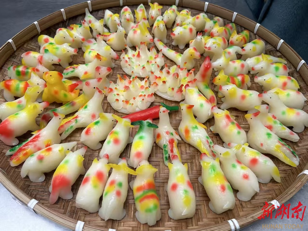 活动现场,150余名中小学生参与了比赛与体验环节。其中,50名少儿选手同台竞技,展开一场“指尖上的舞蹈”。案台上,大米粉团、天然植物颜料与各式工具依次排列。小选手们神情专注,指尖灵动,揉搓捏刻间,质朴的米粉逐渐化作栩栩如生的造型:有呼应马年、寓意“马到成功”的奔腾骏马,也有憨态可掬的生肖兔、威武的祥龙、灵巧的长蛇等传统意象。更有孩子将亲情融入创作,为属鸡的母亲捏出小鸡,为属蛇的哥哥塑成长蛇,在传承中寄托真挚情感。