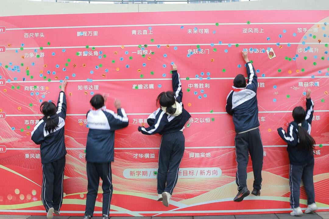 把贴纸贴得最高的同学激动地说:“这是初三最后一个学期了,老师给我的红包里写着‘马到成功,未来可期’,这也是我最大的心愿。我把这句话写在贴纸上,努力把它贴得最高,希望自己在接下来的学习中全力以赴、不负韶华,在中考中交出满意的答卷,向着理想勇敢冲刺!”