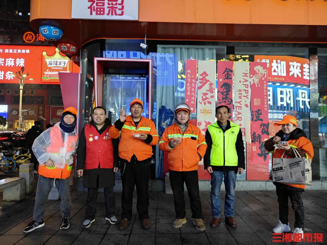 “大姐,夜间风大,喝点银耳莲子羹暖暖身子”“我们准备了衣服和手套,可以用来御寒”……3月3日,长沙市黄兴南路步行街上,广州利富蜗牛公益服务中心组织志愿者在街头开展为期三天的志愿服务活动。3月3日开始,志愿者分为两组,每日19时前往长沙黄兴南路步行街、火车站、五一广场、湘江大道等地,为环卫工人等送去银耳莲子羹、饺子、汤圆等热食,以及衣服、手套等御寒物资。若是遇到了困难残障人士,还会送上新年红包。