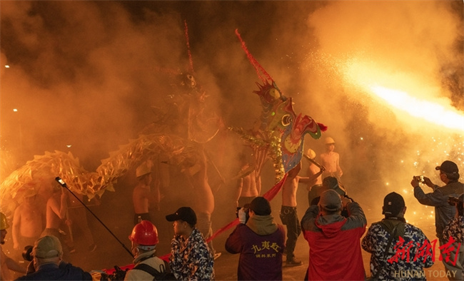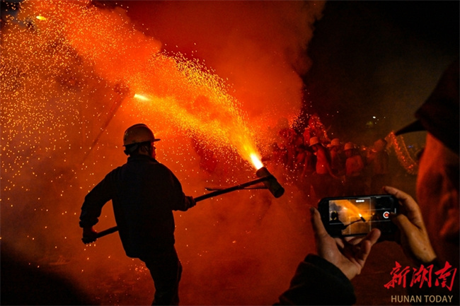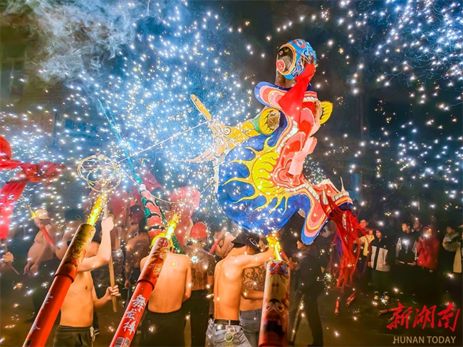 On the evening of March 1, folk artists performed a steel fire dragon dance in Majing'ao Town, Jishou City, creating a bustling atmosphere. With a history of over 300 years, the steel fire dragon dance is a traditional folk activity of the Miao ethnic group. In 2021, the Xiangxi steel fire dragon dance was included in the fifth batch of the provincial-level intangible cultural heritage representative list. (Photo/Long Enze)