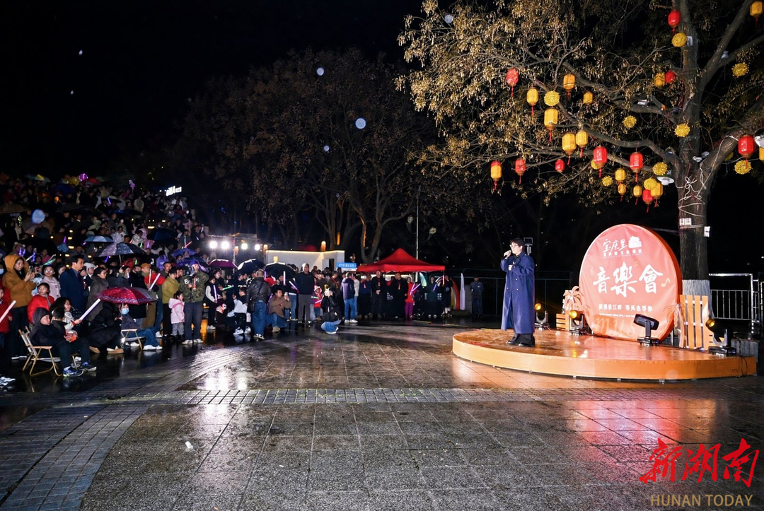 晚间,虽飘起蒙蒙细雨,却丝毫未减市民的热情。雨中赏祁剧、雨中看走秀,更添几分诗意与温情,市民撑伞驻足,沉浸在节日的欢乐氛围中。