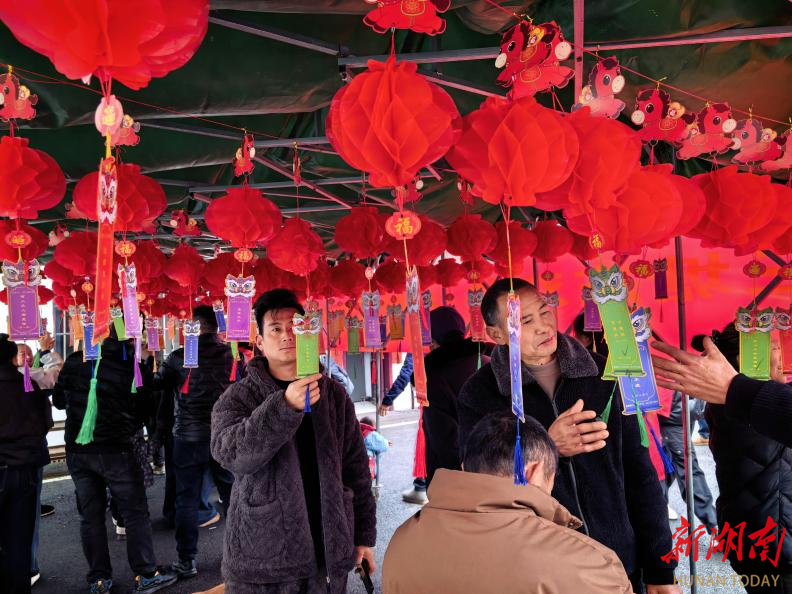 现场,猜灯谜区大红灯笼高挂,数百条灯谜吸引村民争相竞猜,不时传来猜中谜底的欢呼声。投壶游戏点位前排起长龙,老少皆宜的传统游戏引得掌声笑声不断。剪纸区域,妇女代表们指尖翻转,一幅幅寓意吉祥的窗花跃然纸上。