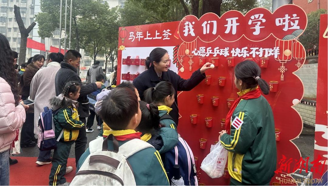 3月4日,娄底大科小学举行开学礼。校园内吉祥物暖心迎宾送糖果,同学们在“马上有福”签到墙打卡,开启充满童趣与希望的新学期。