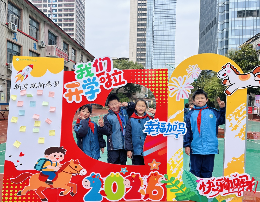湖南日报3月4日讯(通讯员 曾萌晔 欧宇翔)伴着融融春意与朗朗笑声,3月4日,长沙市开福区花城小学迎来2026年春季学期开学报到日。校园处处洋溢着“策马扬鞭、奋蹄前行”的蓬勃朝气,孩子们在欢声笑语中重返校园,踏上新学期的逐梦征程。