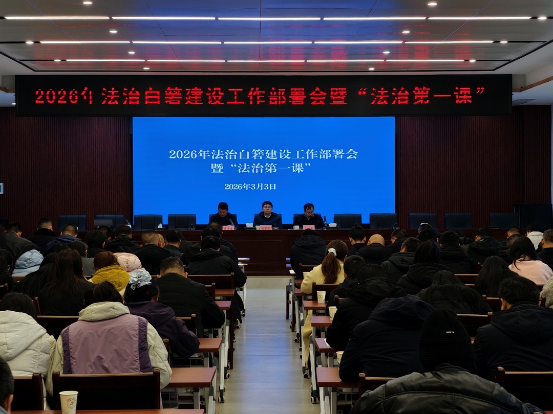 湖南日报·新湖南客户端3月4日讯(通讯员 何思怡)3月3日下午,湖南湘江新区白箬铺镇2026年法治白箬建设工作部署会暨“法治第一课”学习活动举行,全体机关干部,各村(社区)书记、主任、治安主任,辖区企事业单位负责人参会,以学明法、以法促干,为新一年法治白箬建设凝心聚力、谋篇布局。