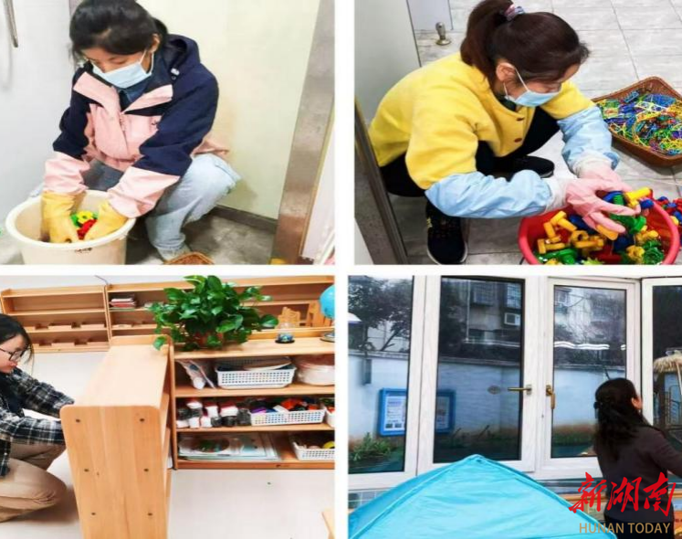 擦亮每一扇窗,清洗每一个玩具。衡阳市第二实验幼儿园全体教职工从班级教室、盥洗室到睡眠室,从各类玩教具、图书到餐饮用具,再到户外活动场地与大型设施,进行了彻底的打扫、清洗和消毒。用整洁温馨的环境,迎接孩子们归来。