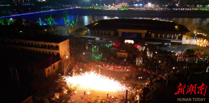 今年春节,祁阳浯溪碑林特别打造了“白加黑”全时旅游模式。景区内红灯高挂、流光溢彩,人头攒动。祁阳首届非遗千灯会正在这里举行,五大主题灯区将千年摩崖石刻文化与现代光影艺术巧妙碰撞,处处洋溢着浓浓的年味。“我在深圳上班,春节回来祁阳这边,之前在网上刷了很多打铁花非遗的视频,今天头一次在现场观看觉得非常的好看。”游客张玉梅说,“春节期间看到这个打铁花也寓意着今年往后的日子会更加幸福。”