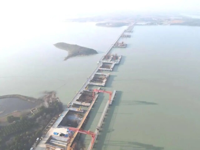 天子山大桥项目是湖北省交通“硬联通”重点工程,目前项目近200名建设者在岗。在梁子湖施工现场,工人分工协作,承台浇筑、V墩施工等多个作业面同步推进,以昂扬斗志和务实作风,锚定完工目标。
