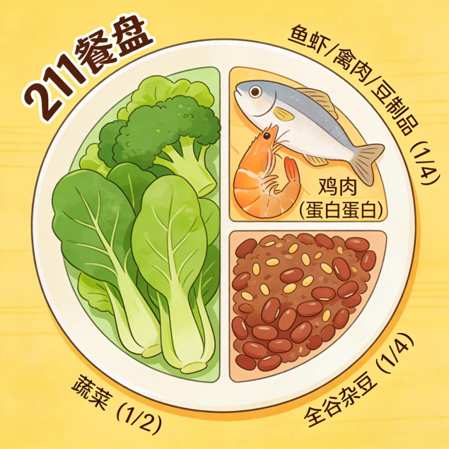 李霞介绍,水果仅作加餐,每天吃一拳头量即可,最佳食用时间为两餐之间,切勿替代正餐;日常饮食遵循「211 餐盘法则」(1/2 蔬菜 + 1/4 优质蛋白 + 1/4 全谷杂豆主食),按蔬菜→蛋白→主食顺序进餐、细嚼慢咽,同时每天吃够 12 种以上食物,保证营养均衡。