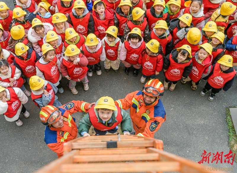 3月4日,道县消防救援大队,幼儿园小朋友在消防员的协助下体验拉梯登楼项目。新学期伊始,当地幼儿园、中小学校纷纷开展多种形式的“安全第一课”,帮助学生增强安全意识,提高自我保护能力。蒋克青 文甜 摄影报道(湖南图片库)