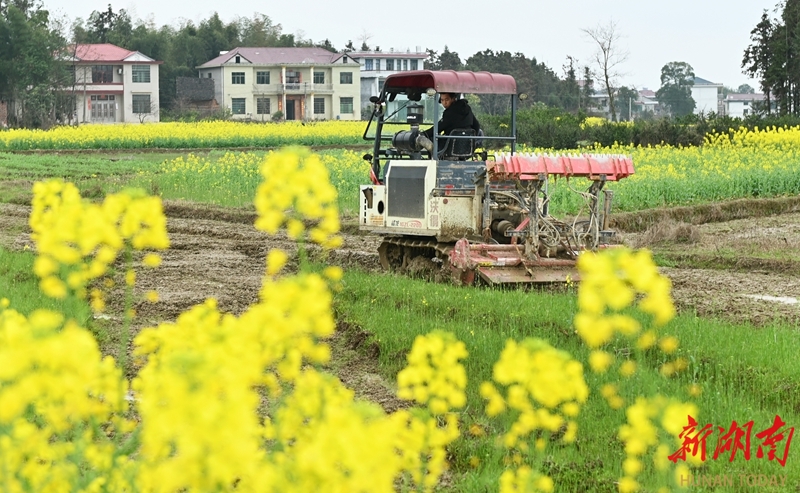 3月4日,洞口县花古街道长龙村,农民驾驶农机翻整田地。惊蛰时节,当地农民抢抓农时开展春季田间管理,田野间呈现一派繁忙景象。 滕治中 摄(湖南图片库)