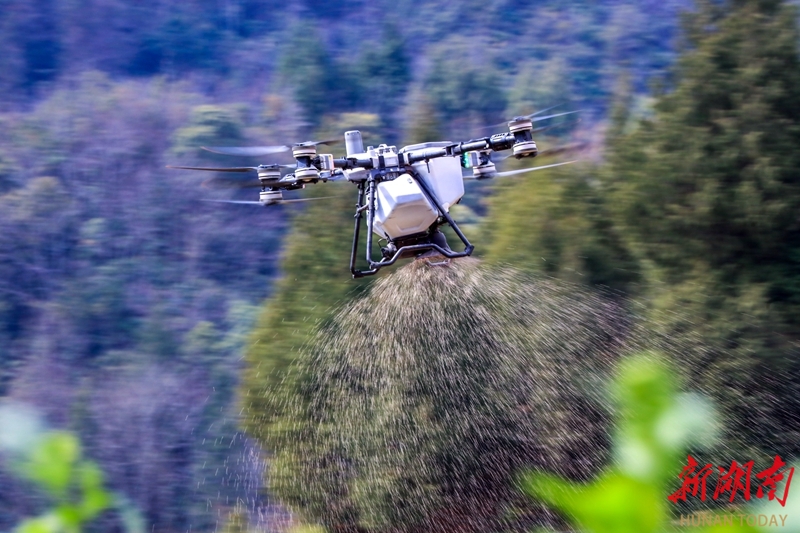 3月4日,龙山县茅坪乡水沙坪村,植保无人机在百合田开展施肥作业。惊蛰时节,当地农民抢抓农时开展春季田间管理,田野间呈现一派繁忙景象。 曾祥辉 摄(湖南图片库)