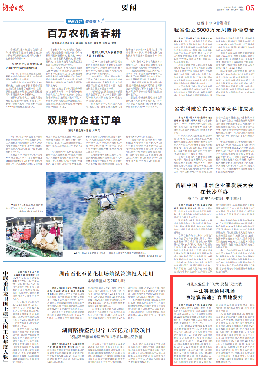 湖南日报3月4日讯(全媒体记者 于淼)记者从省交通运输厅获悉,近日,岳阳2个项目获批复:平江县将建设首座A1类通用机场,助力当地低空经济发展;G4京港澳高速羊楼司至岳阳龙湾段的扩容工程建设用地正式获得国务院批复,距离全面开工更近一步。