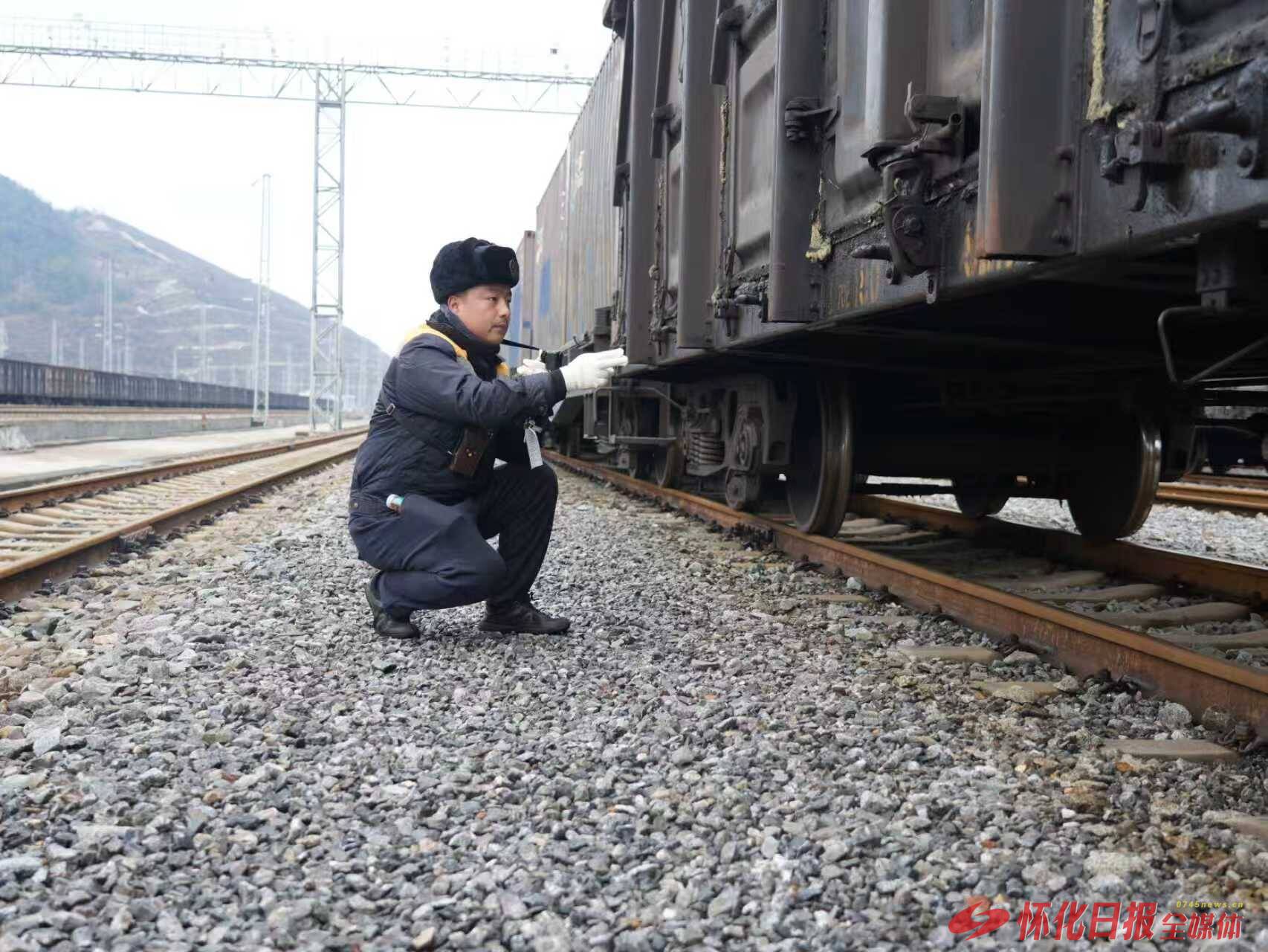 “17道北头请求封锁。”接到封锁回示后,主检连结员廖恒立即投入17道看车作业。确认关门车、连接制动风管、核对车辆车号……他虽身着厚重的调车服,但整套作业娴熟流畅,一气呵成。检查过程中,他细致入微、一丝不苟,从车钩连接状态到制动部件性能,从车辆外观状态到关键部位状况,每一处细节都逐项排查、认真核对,坚决不放过任何一处安全隐患。