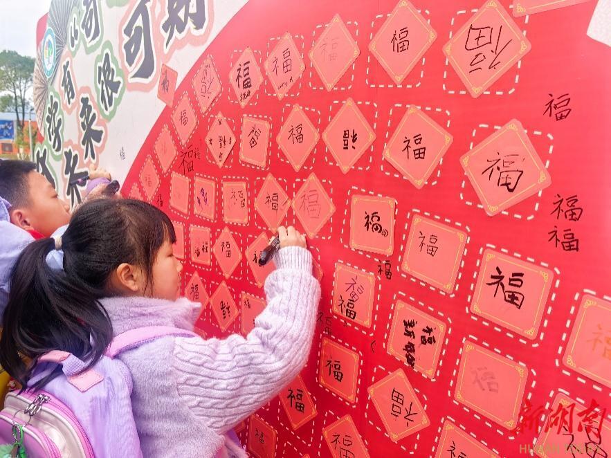 上午8时,校园已被精心装点,学校门口“骐骥迎元宵 红韵启新程”“龙马精神励少年 爱国爱队向未来”等标语格外醒目,学生们正围聚在展板前书写“福”字,一笔一划间,是对传统文化的热爱,也是对新学期的美好祝福。社团展台依次摆开,点燃孩子们的热情,大家纷纷驻足,上手体验。
