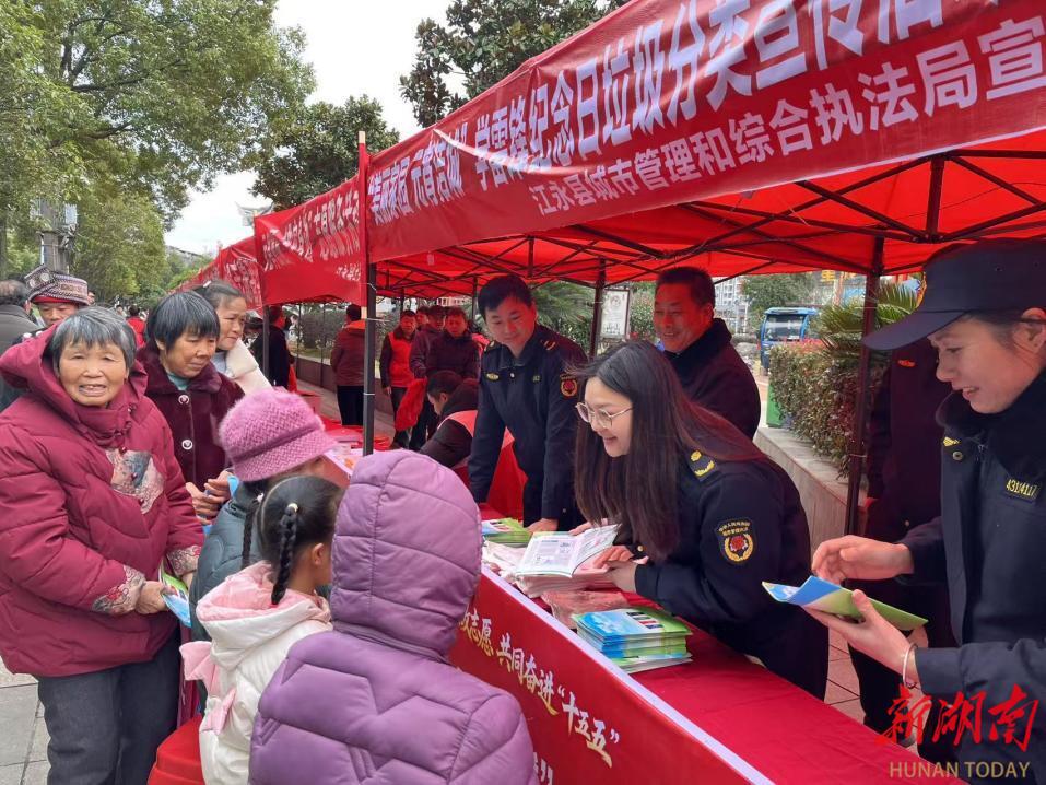 新湖南客户端3月5日讯(通讯员 张磊 周朝阳)元宵佳节氛围浓,志愿服务暖人心。为迎接学雷锋纪念日,进一步普及生活垃圾分类知识,营造干净整洁、文明和谐的城市环境,近日,江永县在凤凰广场开展“美丽家园,元宵洁城”学雷锋纪念日垃圾分类主题宣传活动,以实际行动弘扬雷锋精神,倡导绿色环保理念。