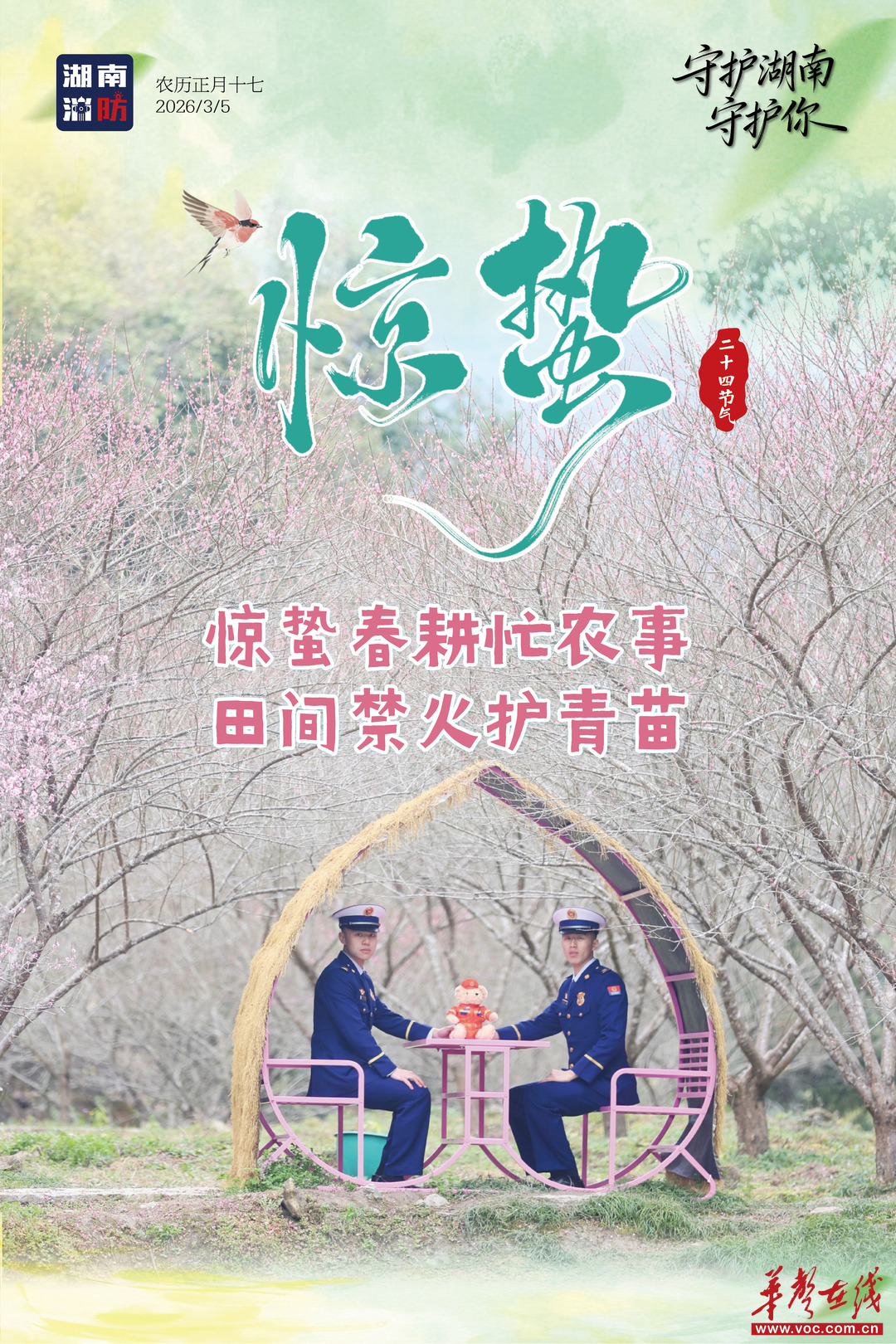 今日惊蛰,春雷始鸣,万物复苏。随着气温回升、风干物燥,春季火灾也进入易发高发期。湖南消防用一组科普海报提醒您:惊蛰时节,让安全意识与春意一同萌发,防患于未“燃”才能共护这大好春光。