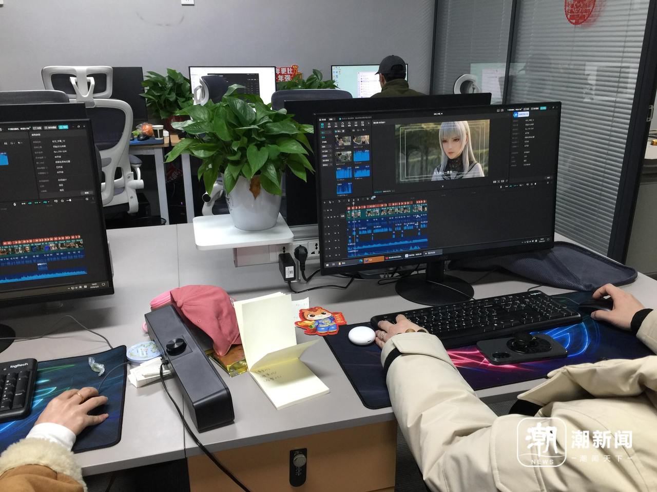 德玉影视技术人员正在制作AI短剧。潮新闻 记者 沈立 摄