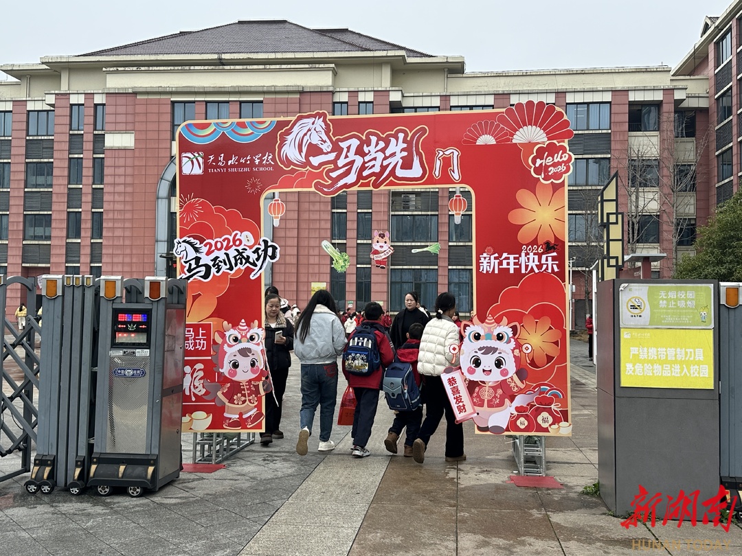 湖南日报·新湖南客户端3月5日讯(通讯员 刘双)3月4日, 天易水竹学校精心组织“骏马奔腾新学期·一马当先向未来”主题开学日活动。活动紧扣丙午马年新春氛围,通过“一马当先门”、摸高祈福、投壶立志、协力夹马等趣味环节,营造“龙马精神、活力启航”的开学仪式感,帮助同学们从假期模式自然过渡到校园生活。