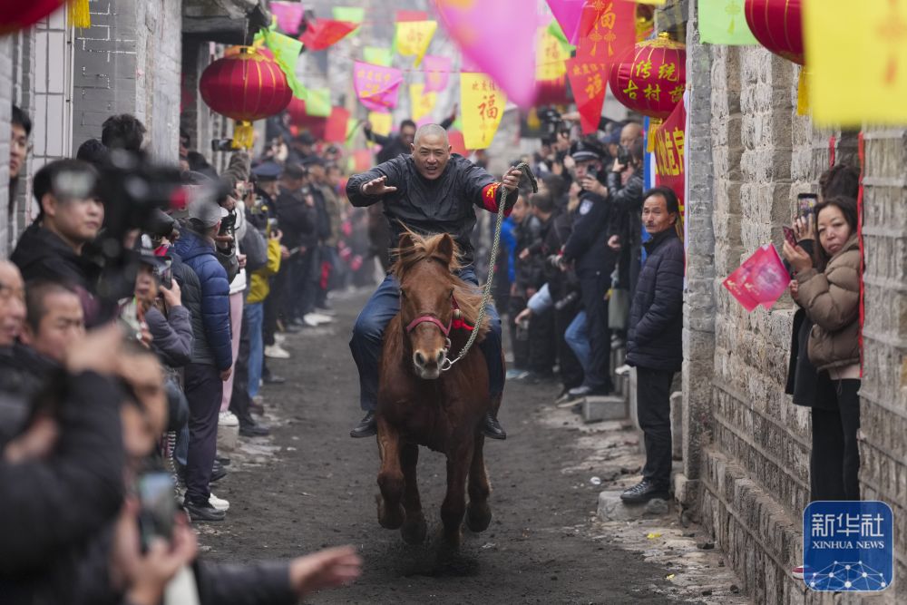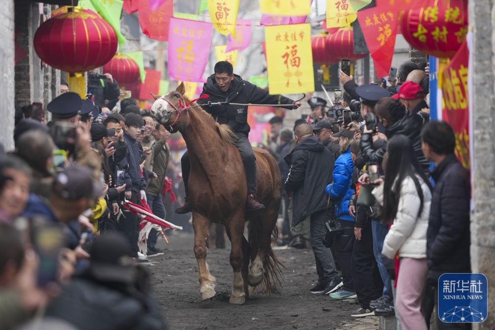 3月4日是农历正月十六,众多游客来到山西省阳泉市平定县下董寨村,感受国家级非遗项目“跑马排”。“跑马排”是下董寨村一项历史悠久的民俗活动,村民骑着马在长百余米、平均宽度不足四米的青石古巷中来回奔跑,吸引众多游客观看。