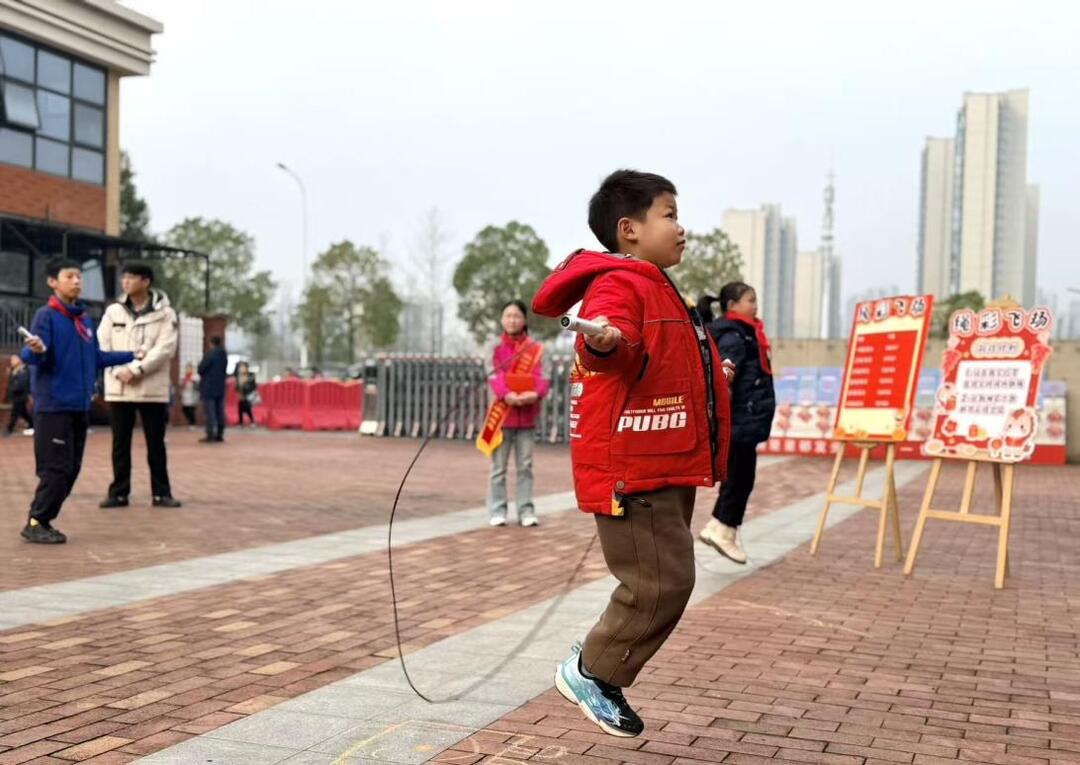 “绳采飞扬”挑战区,同学们争分夺秒、轻盈跳跃,一场体能大比拼火热上演。这不仅是身体的较量,更是新学期“强健体魄、砥砺意志”的激昂号角。