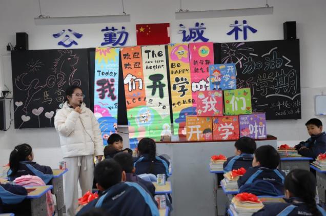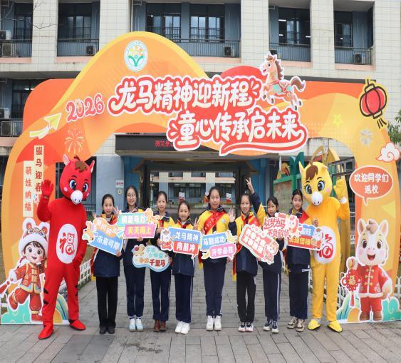 长沙市天华第二小学以 “龙马精神迎新程 童心传承启未来” 为主题,将马年新气象与开学氛围深度融合。校门口,老师身着马年玩偶服热情迎生,红领巾志愿者手持 “小马驹” 祝福牌送上 “马年超旺”“开学必胜” 的美好祝愿;班级内,马年主题班会热闹开展,师生共立新学期目标,以昂扬的龙马精神诠释新时代少年的奋进姿态,让拼搏向上的精神底色在低年级学子心中悄然扎根。