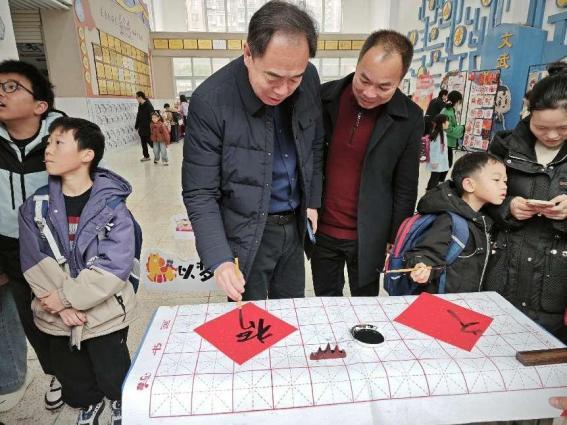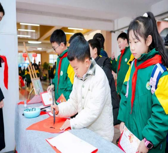长沙市泉星小学以 “马上有福” 为主题,将传统文化体验与雷锋精神宣传相结合。活动现场,田汉教育集团书记田丰与学校书记陈效挥毫泼墨,为师生书写福字、送上新春祝福,“马年跨栏” 趣味活动让校园充满欢声笑语;学校大厅内,学生寒假实践作品琳琅满目,弘扬雷锋精神的宣传画、精巧的马年剪纸、创意环保作品等,充分展现了学子们将雷锋精神转化为实践行动的良好风貌,也彰显了集团一体化育人中 “实践启迪成长” 的理念。