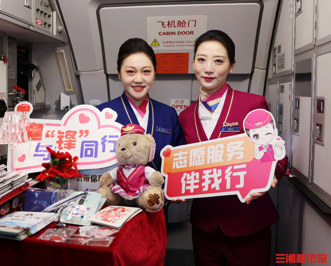 三湘都市报·新湖南客户端3月5日讯(全媒体记者 李致远 通讯员 陈媛 向员)3月5日是第63个“学雷锋纪念日”,南航湖南分公司联合湖南雷锋纪念馆、南航北方分公司,在长沙—沈阳往返航班(CZ5807/CZ6407)上打造了学雷锋主题往返航班。这是南航湖南分公司连续第4年开展“与‘锋’同行”主题航班活动,以空中航班为纽带,接力讲好雷锋故事,让雷锋精神在万米高空薪火相传、历久弥新。