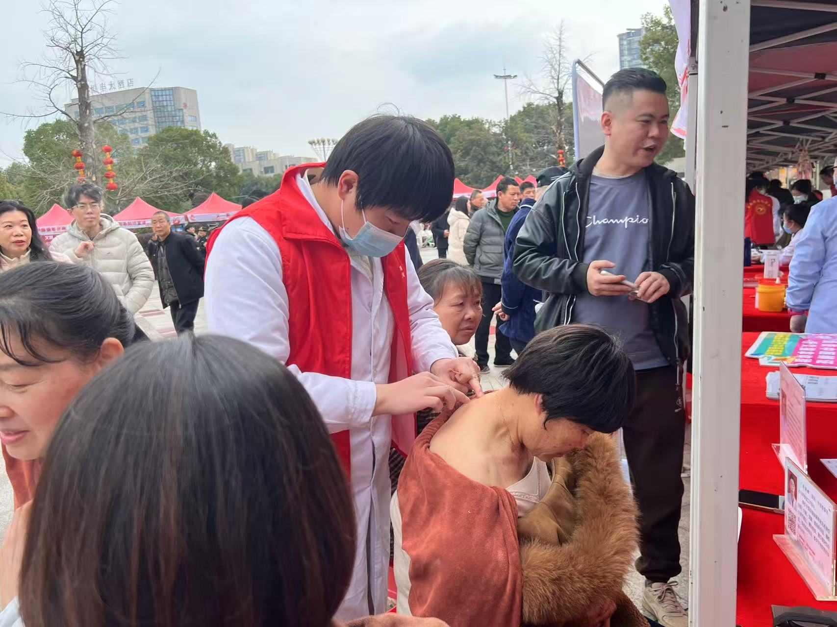 体质检测、血型检测、测血压、专科咨询、中医理疗、健康知识问答等项目备受欢迎。青年医护人员耐心答疑、细致服务,发放健康教育处方与宣传资料,以专业与热忱传递健康关怀。