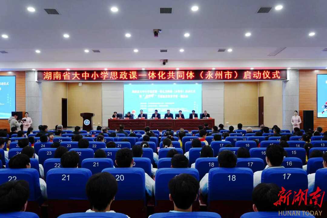 湖南日报·新湖南客户端3月5日讯(通讯员 向薛峰 谢志豪)春潮涌动启新程,思政铸魂育新人。3月5日,湖南省大中小学思政课一体化共同体(永州市)启动仪式暨“永冲锋”专题思政课开学第一课活动在湖南科技学院举行。本次活动由中共湖南省委教育工委、湖南省教育厅指导,永州市教育局与湖南科技学院联合主办,省委教育工委委员、省教育厅党组成员余伟良,永州市人民政府副市长肖质彬,湖南科技学院党委副书记、校长黄创霞等领导出席活动。