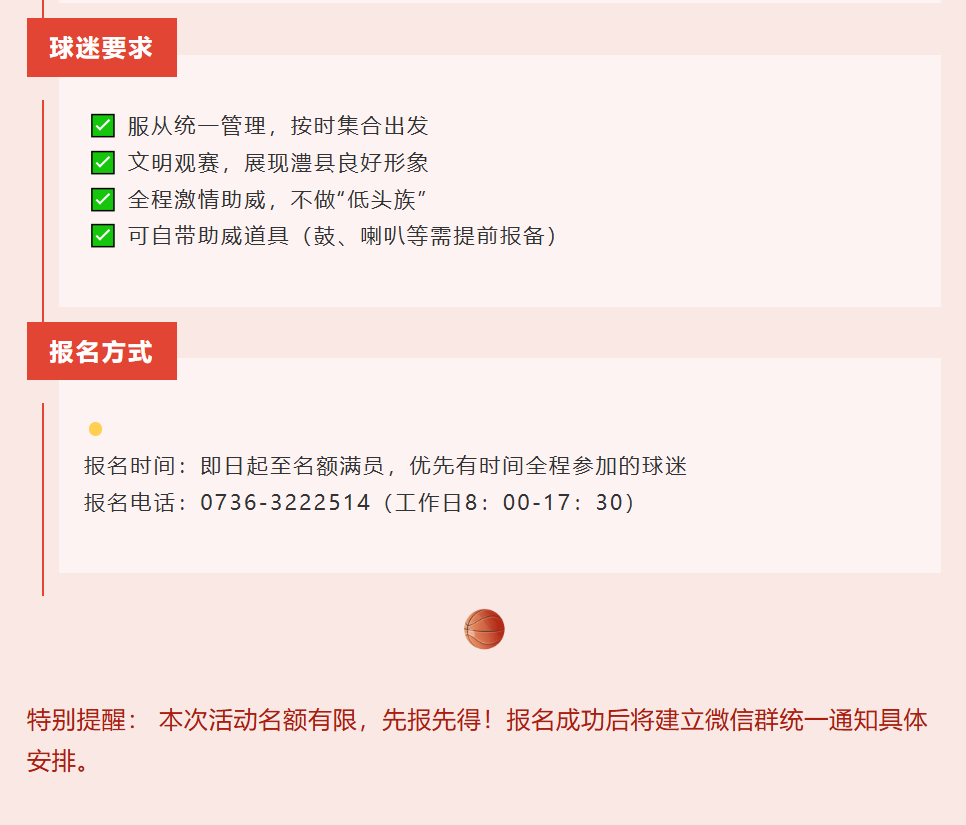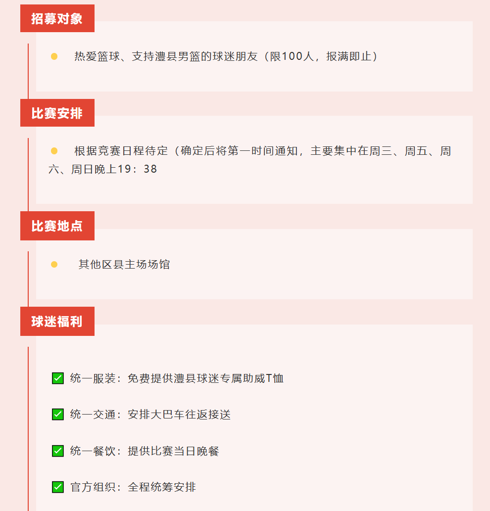 为展现澧县人民团结拼搏的精神风貌,给予球队最强有力的支持,现面向全县公开招募球迷方阵成员,随队出征客场,共同为澧县男篮呐喊助威!