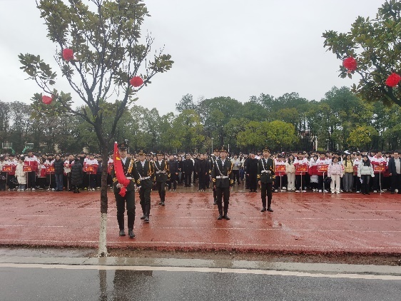 庄严的升国旗仪式如期举行,全体师生肃立,目送国旗冉冉升起。微雨沾衣,却更显目光坚定。今日能以无畏之姿抵御这点滴风雨,明日自能以同样坚韧笑对人生坎坷。 这场特殊的升旗礼,是信念的洗礼,更是新学期最动人的开场。