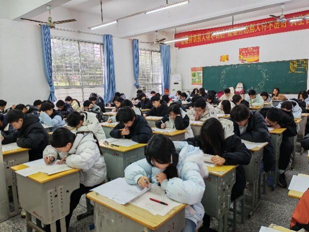 为检验上学期居家学习及寒假自主学习的成果,帮助学生迅速从“假期模式”切换至“冲刺模式”,开学报到结束后,教务处立即组织了新学期首次学情检测 。考场内,秩序井然。同学们凝神静气,认真答卷;监考老师们严格履职,流动巡视。这不仅是一场对知识的检测,更是一场收心归位的“动员令”。