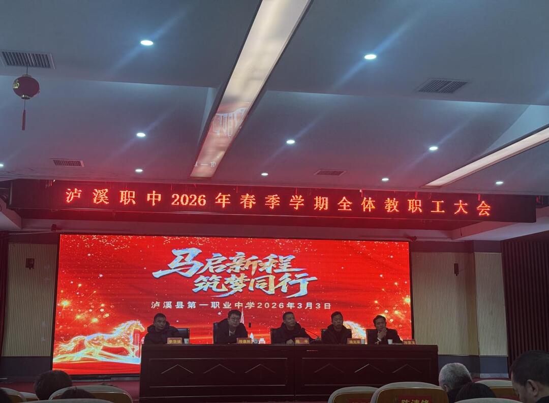 新湖南客户端3月5日讯(通讯员 张敏)3月3日,泸溪职中召开2026年春季学期教职工大会暨开学典礼。该校党总支书记陈平、校长符慕阳等出席会议并讲话,全体教职工参加大会,共同开启新学期征程。