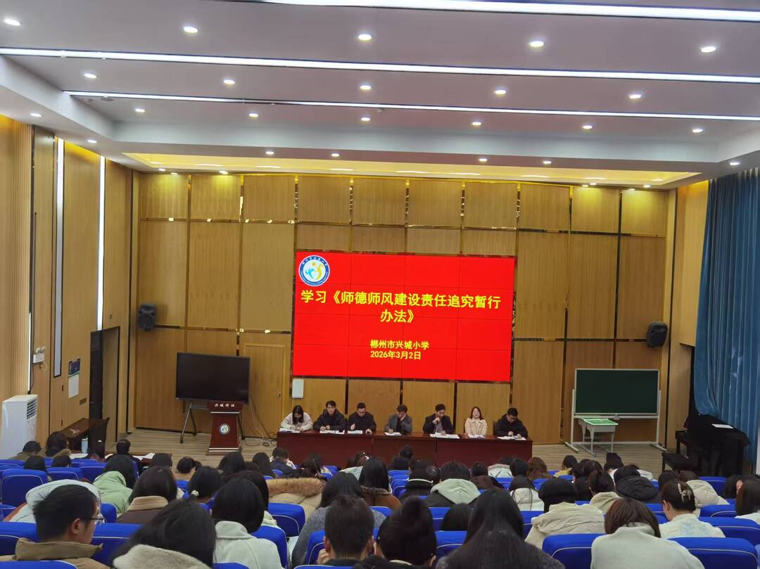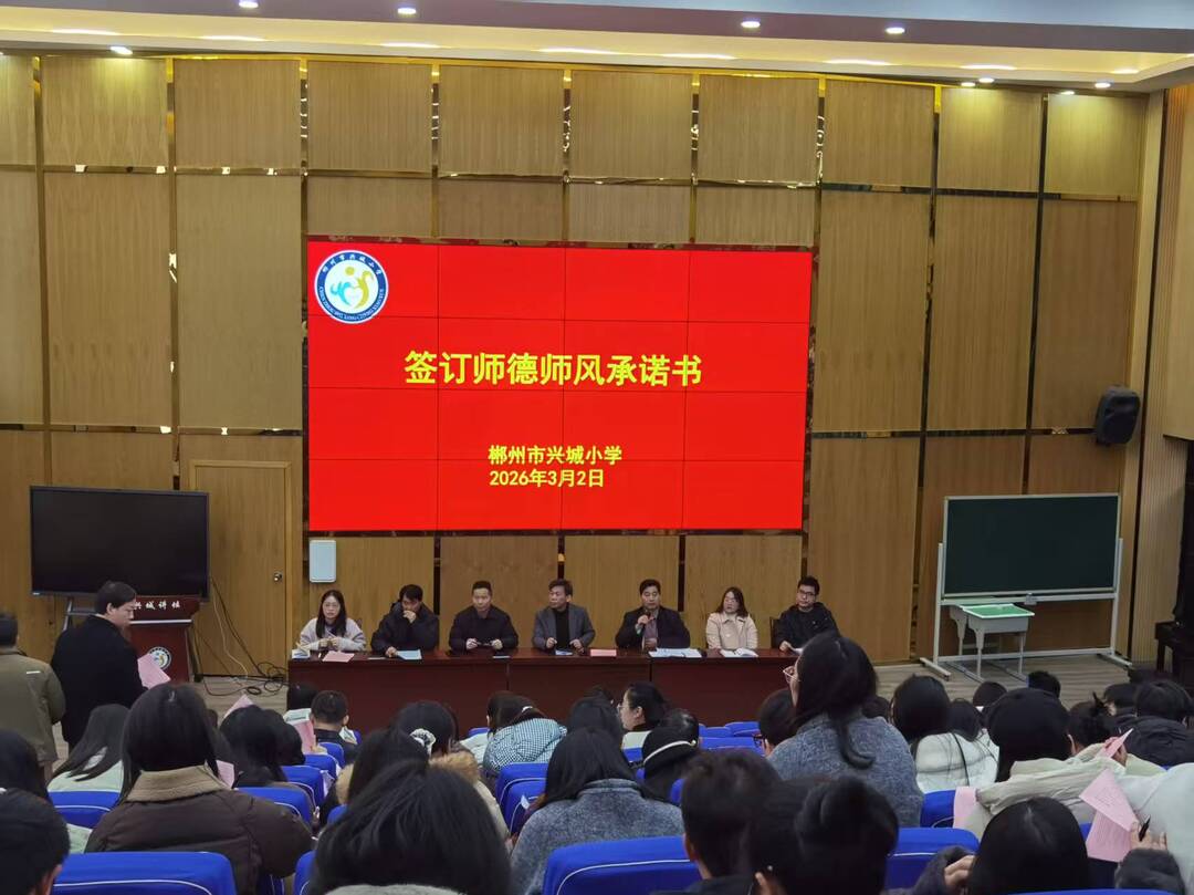 新湖南客户端3月5日讯(通讯员 李园秀 刘思远)为扎实推进2026年春季开学工作,强化师德师风与廉洁从教建设,营造风清气正育人环境,郴州市兴城小学召开春季开学工作部署会,全体教职工参会。
