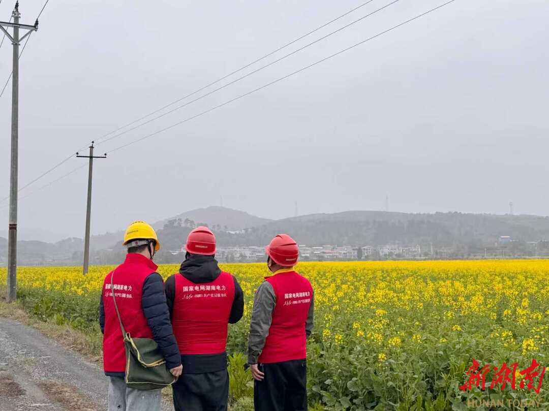 湖南日报·新湖南客户端3月5日讯(通讯员 陈雅颖)春风拂过桂阳县太和镇,5000亩油菜花竞相绽放,金色花海与错落村落相映成趣,吸引各方游客前来赏花观景。3月3日,国网桂阳县供电公司共产党员服务队来到油菜花观景地,开展春耕安全用电检查“电力护花”行动,赋能乡村振兴发展。