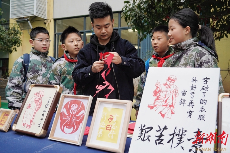 3月5日,长沙市非物质文化遗产保护中心在国防科技大学附属小学开展“践行雷锋精神 点亮传承之光”2026年春季开学第一课活动,通过“听雷锋故事”“奏雷锋歌曲”“观《雷锋日记》皮影戏”等形式,引导学生感悟雷锋精神的时代内涵,同时体验非遗技艺,感受传统文化魅力。湖南日报全媒体记者 徐行 通讯员 曾仪 摄影报道