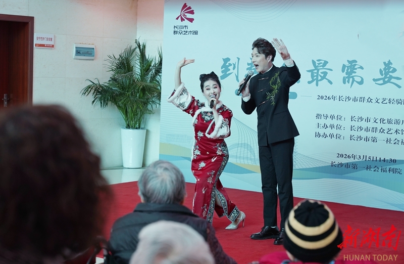 3月5日,“文化悦老 暖心长沙”2026年长沙市群众文艺轻骑队走进长沙市第一社会福利院志愿服务活动举行。该活动由长沙市群众艺术馆主办,志愿者们通过器乐合奏、花鼓戏、民族舞、相声、对唱等,为老人们送上一场丰富多彩的文艺演出。湖南日报全媒体记者 徐行 胡雪怡 摄影报道