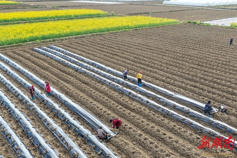 3月5日,新田县骥村镇杨家村,村民在田间挖土施底肥。惊蛰节气,各地农民抢抓农时,田间地头一派忙碌景象。刘贵雄 陈祉凝 摄影报道(湖南图片库)