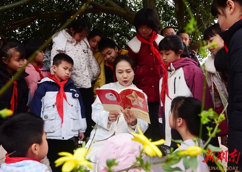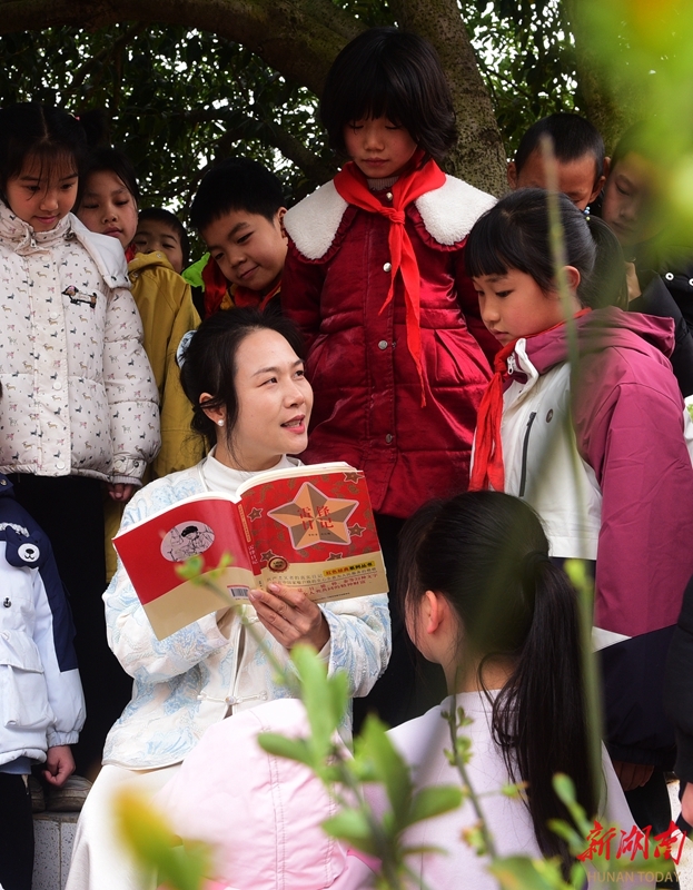 3月5日,嘉禾县袁家镇中心学校,老师在给学生讲雷锋故事。当天是学雷锋纪念日,各地开展形式多样的活动,传承雷锋精神,弘扬时代新风。黄春涛 李瑞丹 摄影报道(湖南图片库)
