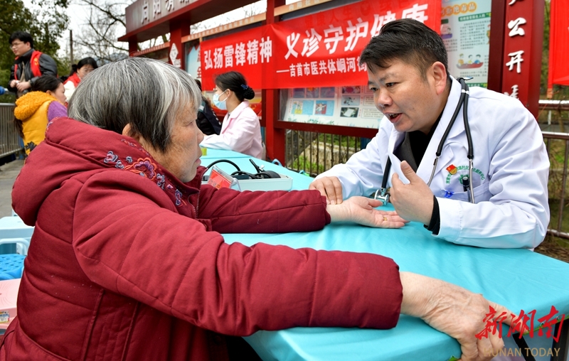 3月5日,吉首市峒河街道向阳社区,志愿者在为市民提供义诊服务。当天是学雷锋纪念日,各地开展形式多样的活动,传承雷锋精神,弘扬时代新风。姚方 杨燕萍 摄影报道(湖南图片库)