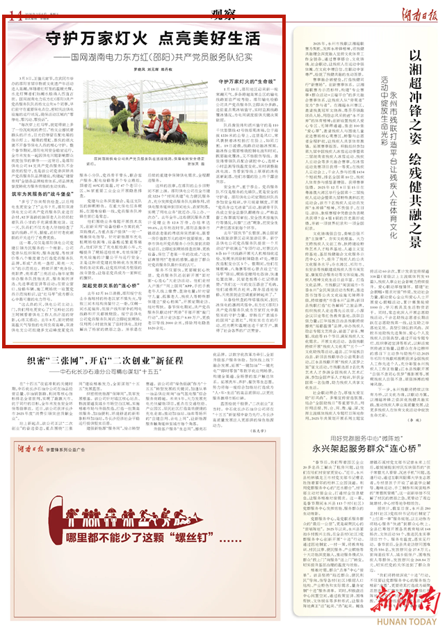 “每次穿上红马甲,就觉得肩上多了一份沉甸甸的责任。”杨文业擦拭着额头的汗水,目光仍停留在配电箱的指示灯上。璀璨的霓虹、喜庆的烟火离不开春节保电人员的精心守护。整个春节期间,邵阳电网安全稳定运行,全市未发生一起因供电问题影响群众欢度佳节的事件——这背后,是邵阳供电公司14支共产党员服务队不舍昼夜的坚守,也是该公司党委深耕共产党员服务队品牌建设,构建起“建管育用”全链条品牌培育体系,将品牌美誉度转化为服务效能的生动实践。