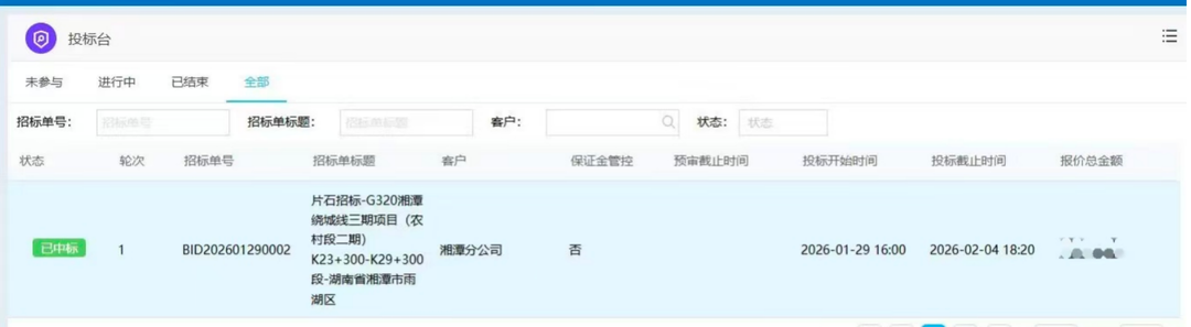 湖南日报·新湖南客户端3月6日讯(通讯员 胡泊 胡丹)2026年新春伊始,湘潭城发·矿山集团建材砂石骨料销售捷报频传,先后中标G320湘潭绕城线三期项目片石材料采购、南方新材料科技有限公司2026年度骨料集采入围谈判项目、中铁五局集团长沙地区项目物资招标采购,预计中标业务规模达3000万元,以强劲势头擂响首季“开门红”战鼓。